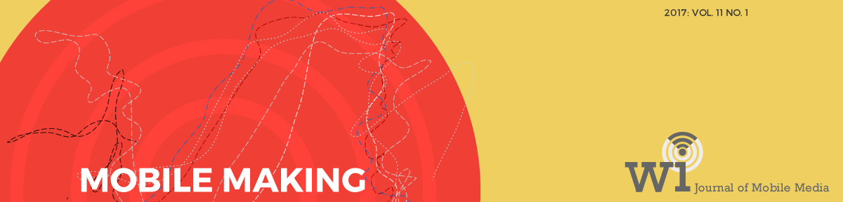 This special issue of Wi takes an open approach to the theme of mobile making. It is motivated in part by the continuous proliferation of avenues for producing media on-the-go with mobile apps. But it also addresses constellations of mobilities and making that depart from a focus on apps, putting into play a wide range of tools and concepts.