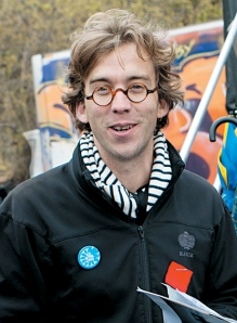 Sound the alarm and head for the underground shelters: a grave new threat to civil society has arisen in Québec. Fred Pellerin (see terror-inspiring mug shot above), whose main activities up until now have consisted of singing folksongs and telling touching stories about his home village, is now wearing the red square. Québec’s Minister of Culture, Christine St. Pierre, is concerned: