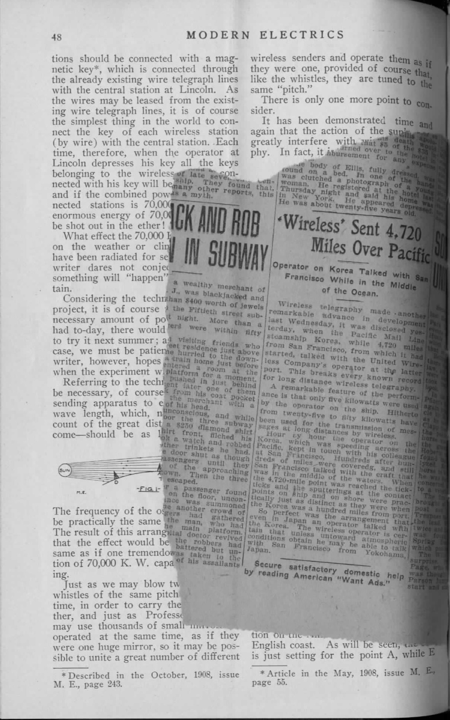 - See for instance the early report on “Via Wireless,” a theatrical show at Luna Park, Coney Island produced by its founder Frederick Thompson (“Via Wireless,” 1908, 304). ^