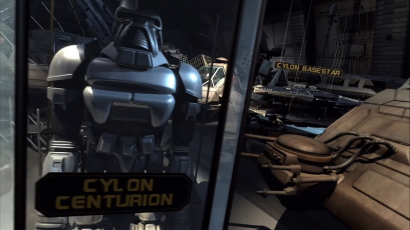 Moreover, the spaceship Galactica itself is a flying relict (cf. Beil et al., 2012). As the last ship of the first cylon war, it gets decommissioned and remodeled into a war museum exhibiting old spaceship and cylon models known from the original 1970s Battlestar Galactica[13] series. Furthermore, this change of (fictional) media technology is reflected in an interesting plot twist in the pilot episode of the series, since the Galactica can only escape the cylon attack because of its dated technology. When the cylons succeed in immobilizing the human spaceship fleet by using a computer virus, the computer systems of the Galactica are not infected simply because they are too old and therefore not connected to the defense network.