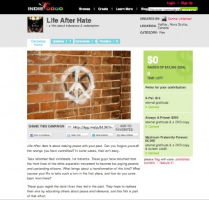 Grappling with the meaning and role of the virtual producer returns us to a consideration of how crowdfunding websites and filmmakers/artists articulate together to generate project support within a culture of circulation. Developing a profile in order to attract funders is a key function of crowdfunding sites. Both Kickstarter and Indiegogo recommend a particular configuration of how to profile and promote each project. For both sites, this includes preparing a written one-page pitch, developing a list of appropriate incentives or perks for backers or funders, and presenting a short video that illustrates something compelling about your project (Kickstarter, 2011; Indiegogo, 2011). Littlefield participated at a minimal level in this marketing strategy: she provided only a small amount of sample footage and a very short list of imaginative incentives to Kickstarter, including “good karma.” In her opinion, the recommended marketing structure did not have a significant impact on reaching her goal. For Adams, Conteh, and Forysth on the other hand, developing compelling videos and one-page pitches, combined with original incentives lists grounded in the projects, were critical. Adams and Forsyth both described a creative process that identified an extensive list of incentives that was subsequently modified in order to bring costs down or to appeal to a more geographically diverse audience. Plugging in content to the recommended promotional structure was a significant contribution to their success, as well as reinforcing a support relationship that they hope will continue by converting crowdfunders to blog, website, or Facebook participants.
