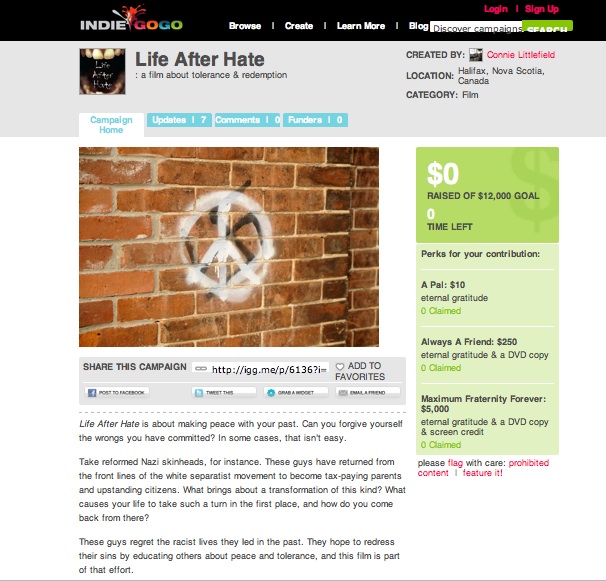 The first project creator I interviewed was filmmaker Connie Littlefield, from Halifax, Nova Scotia. Littlefield has made a few attempts to raise funds on both Kickstarter and Indiegogo. Littlefield articulates a strong opinion about what contributed to her experiences of uneven financing success.