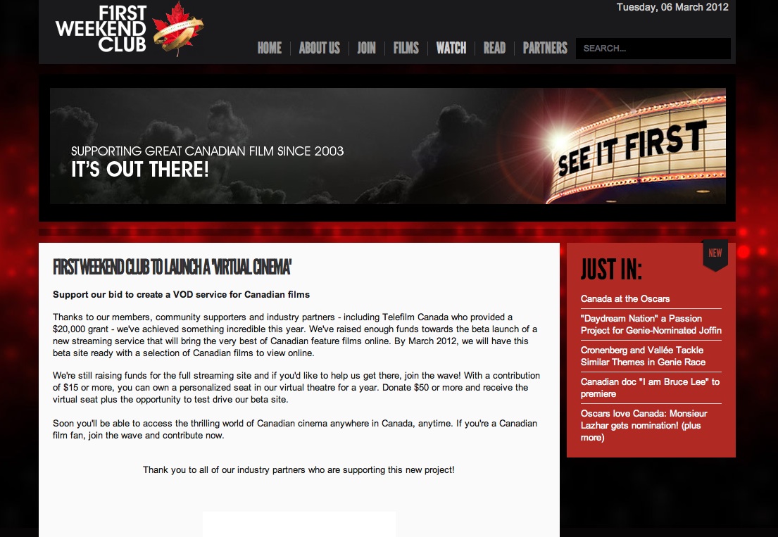 Screen shots of “First Weekend Flix” (in-progress) from the FWC website, March 6, 2012.