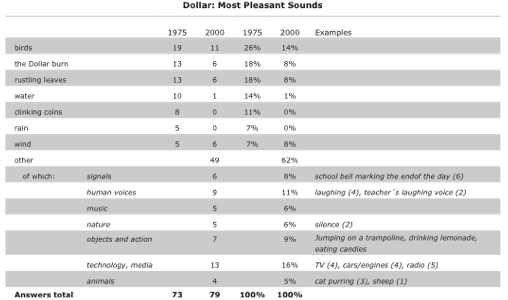 TABLE 1. SONIC PREFERENCES IN DOLLAR IN 1975 AND IN 2000. (Modified from Järviluoma et al 2009, 234.)
