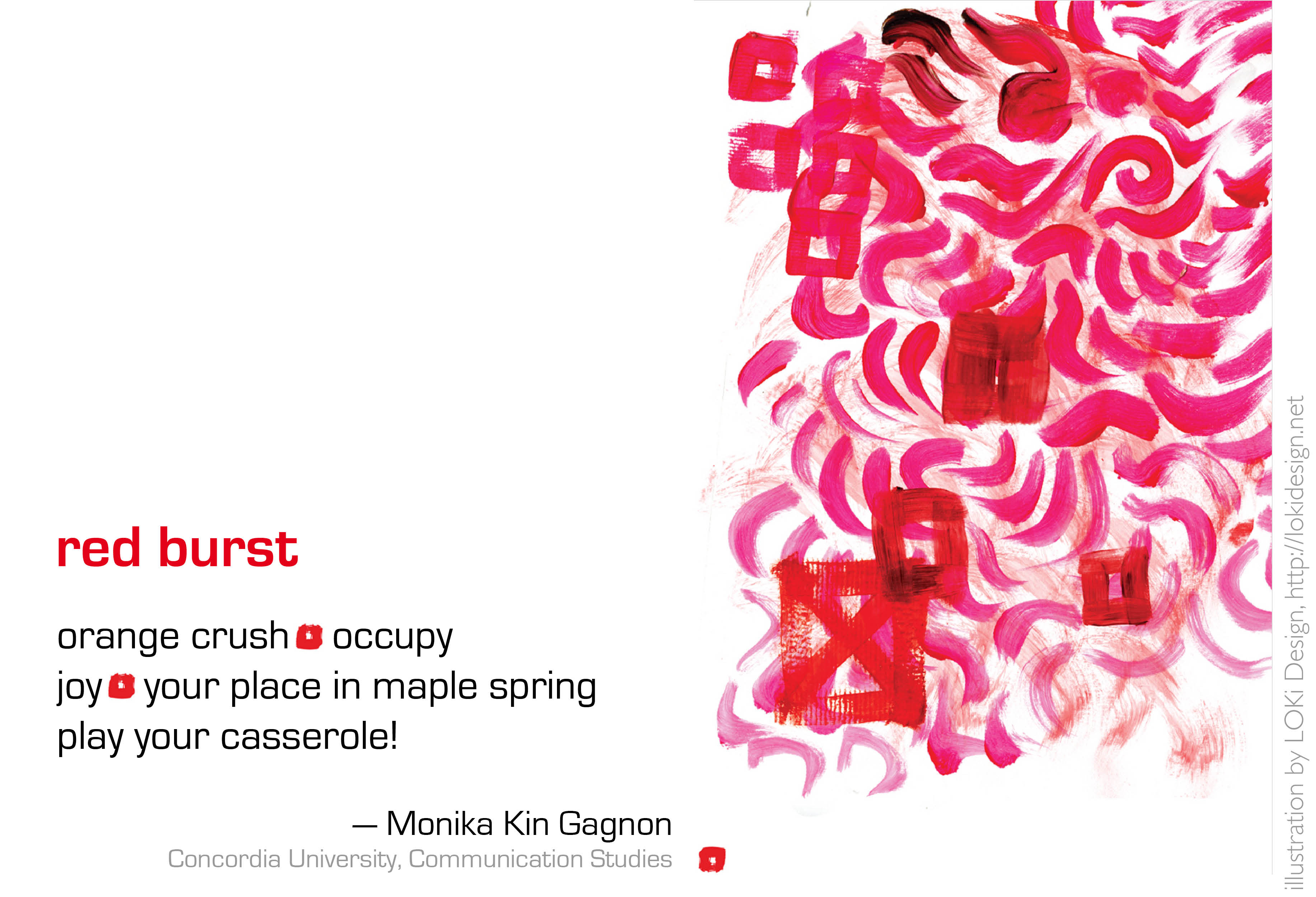 2012: Vol. 6 No. 1: Out of the Mouth of ‘Casseroles’ I, Poetry Red Burst 06/01/2012 MONIKA KIN GAGNON, COMMUNICATION STUDIES, CONCORDIA UNIVERSITY https://doi.org/10.65968/BCLE5411 Download PDF of Article
